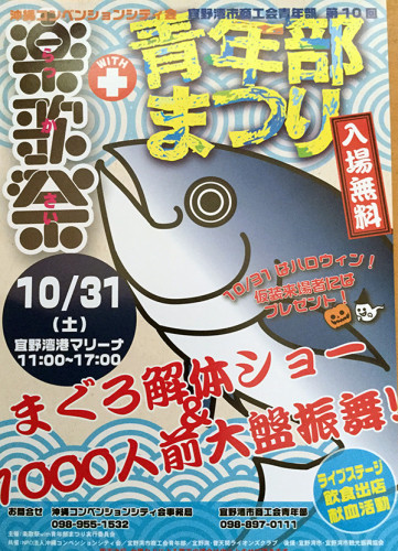 10月31日(土)に宜野湾港マリーナにて 第10回 宜野湾市商工会 青年部まつりが開催されます。 今回はコンベンションシティ会の楽歌祭と合同で開催します。 当日はまぐろ解体ショーがあり、その場でお刺身が振る舞われるそうで… 続きを読む >