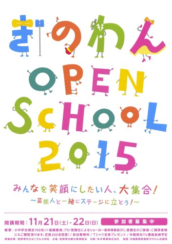 「第2回 ぎのわんオープンスクール2015」参加者募集!! 世界に通用するエンタテイメント人材を宜野湾市から生み出すことを目的として、「ぎのわんオープンスクール2015」を開催致します。 ★開催日★ 平成27年11月21… 続きを読む >